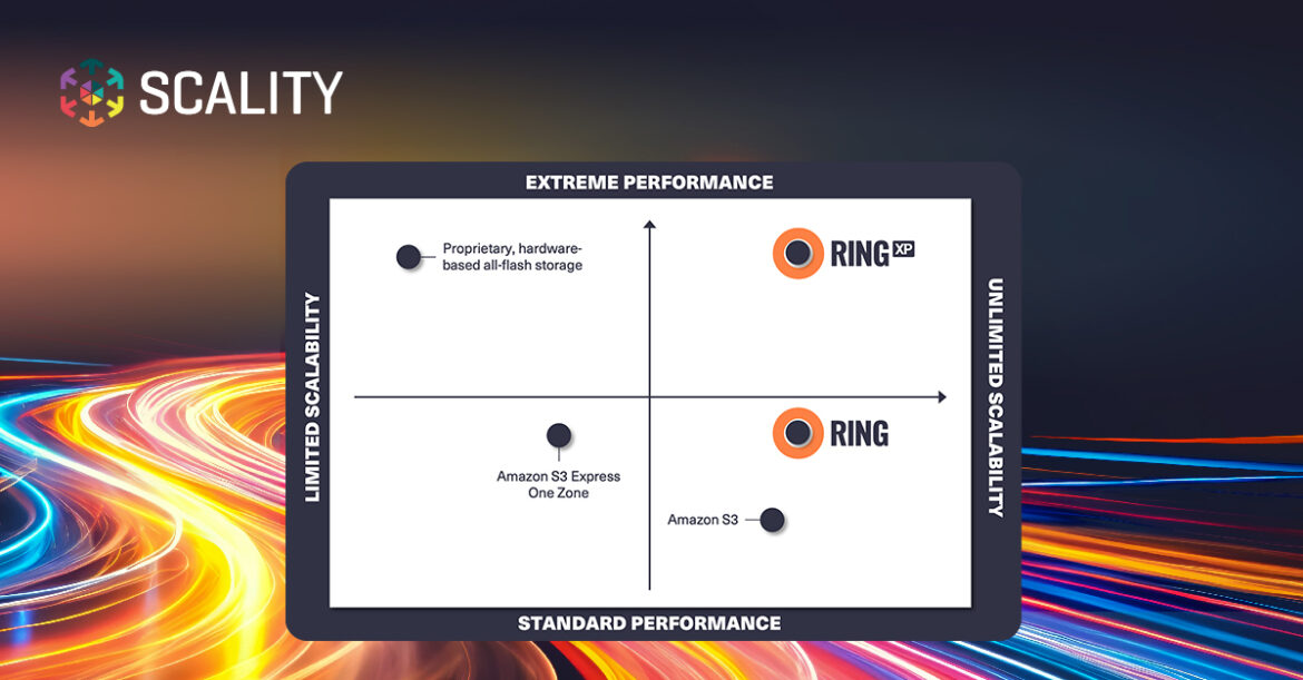 2.7K Scality today announced RING XP β a special configuration of our RING object storage software that is optimized for the extreme performance demands of AI model training and fine-tuning. Applications in this domain need access to small data objects in the millions and billions (or more), where the per-object size is in the range of a few kilobytes (KB) or smaller, and the system also supports large (GB+) objects very efficiently and with high throughputs. The key storage performance goal here is to achieve extremely low access latencies. For small object (4KB and lower) workloads, RING XP achieves read and write access latencies measured in 100s of microseconds β a level of performance that has never been achieved before by any object storage solution on the market, whether on-premises or cloud-based. RING XP – eXtreme Performance solution for AI model training and fine-tuning with AI applications. How we achieved the results: Context for RINGβs eXtreme Performance For context, RING XP responding in microsecond latencies can be compared to: Standard AWS S3 cloud object storage: Amazon S3 delivers latencies between 10β50 milliseconds, though this is not deterministic or bounded by an SLA, and latencies are often higher. Amazon S3 Express One Zone: AWS introduced a streamlined (less functional and not S3 API-compatible) object interface in late 2023. In exchange for reduced functionality (changed bucket model, data only in one region/zone), it promises βsingle digit millisecondβ latencies. All-flash file systems (not object storage): All flash-file systems that are appliance-based β often only on proprietary servers β can deliver latencies in the 100s of microseconds over file (NFS) protocols. While some of these do offer S3 object storage interfaces, they donβt publish object performance data and are nearly certain to insert higher latency over object protocols than via file system interfaces. Only RING XP can scale to exabytes and provide microsecond latency. RING XP performance testing was conducted in the following environment: Software version: RING/RING XP 9.3.0.8 Platform: Dell PowerEdge R7615, AMD EPYCβ’ 9124 3.0GHz, 3.2TB PCI/NVMe mixed-use drives Operating system: Rocky Linux 8.6 (kernel version 4.18.0-372) Network: 1 x 100GbE Test driver: Client on Dell PowerEdge R7615 server writing and reading 4KB objects over RING XP object storage API (PUT/GET requests) Response-time latencies measured on the client include send/receive time for 4KB data object RING XP object request performance distribution Performance levels achieved: In this environment, RING XP delivered consistent access latencies under 511 microseconds (GET) and under 741 microseconds (PUT) for a majority of API requests. This level of latency makes RING XP 10β20X faster than Amazon S3 Express One Zone and 50β100X faster than standard Amazon S3, putting it in the same range as hardware-centric (not software-defined) all-flash file systems that are often more costly. We, therefore, assert that RING XP is the worldβs fastest object storage solution, making it an ideal match for the needs of AI applications for model training and fine-tuning. RING XP technical details RING XP is built on Scalityβs proven RING distributed software stack. It has all of the comprehensive capabilities of standard RING in terms of scalability (in multiple dimensions), data durability, high-availability, self-healing and simplified systems management at scale. The building blocks of RING XP are: High-performance object storage API Ideal target for AI applications, tools and file systems via simple object APIs Virtually unbounded, flat namespace = major simplification vs. file systems + a natural fit for AI apps built with cloud-native design principles RING storage stack Scale-out, distributed system with no single points of failure for high availability and ability to grow in multiple dimensions All advantages of RING for high data durability (erasure coding, replication, self-healing and more) Optional: Reduced data durability policies for maximum performance on small objects (ideal for scratch storage) RING software deployed on AMD EPYCβ’, all-NVMe flash server platforms Reference platforms from HPE, Supermicro, Dell & Lenovo at launch Making the strong tradeoff of API features for extreme performance Scality customers who are investing in AI projects tell us that they are in a race for extreme performance β as Amazon has shown the market with S3 Express One Zone β and the right tradeoff for these applications is to eliminate unnecessary API features and heaviness in exchange for low latency and high throughput. With that said, we believe that Amazon did not go far enough with S3 Express One Zone, leaving its users with a weak tradeoff that doesnβt provide sufficient performance gains. With RING XP we’re going even further by simplifying the object stack and removing features that are commonly performed at a higher level in the stack. For example, every data lake management system (or data lake house) maintains an indexed view of all data across the entire dataset. That’s why we made the decision to remove object listing from RING XP since it would be an unnecessary duplication of functionality and effort. One way to think of RING XP is as an infinitely scalable distributed data storage system that is addressable through a fully routed TCP/IP network, and is flexible and efficient for objects that range in size from a few hundred bytes to gigabytes and beyond. The RING XP object storage API is a simple, fast, REST-based connector optimized for demanding small object AI workloads. It is stateless, lightweight and highly scalable, providing a flexible API for interacting with RING XP through GET, PUT, HEAD and DELETE commands. Because it is so lightweight and has a low resource footprint, it can be deployed on application servers, on the storage nodes themselves, or even on dedicated proxy servers in a disaggreg
